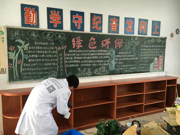 我們發(fā)現(xiàn)教室的黑板報(bào)上學(xué)生寫(xiě)的都是對(duì)綠色環(huán)保環(huán)境的強(qiáng)烈愿望!